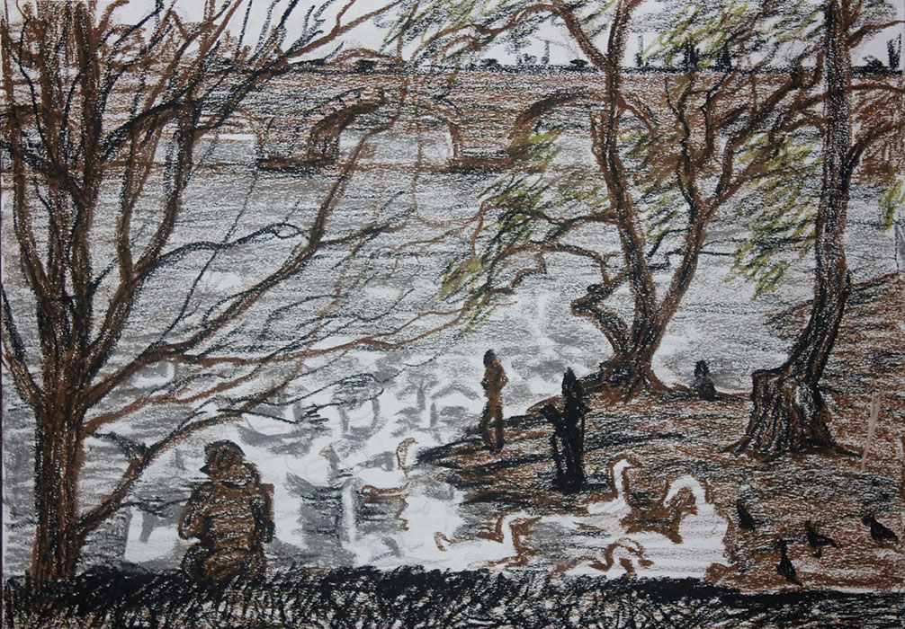 Графика – это рисунок, выполненный художником на таких поверхностях как бумага, калька, крафт, картон, оргалит, фанера. Среди графических материалов могут быть карандаш, гуашь, акварель, акрил, темпера, соус, сангина, сепия, уголь и другие. Произведения, написанные акрилом и темперой, могут являться и живописью, если в них соблюдаются принципы построения живописного изображения. Однако, графика - это более плоское изображение пространства, чем живопись, в том плане, что линейно-тоновой рисунок не фактурный и в нем более простое соотношение цветов. Цвет в рисунке определяется ритмами композиционного пространства произведения, тогда как в живописи важное значение имеет воздушная перспектива цвета.
